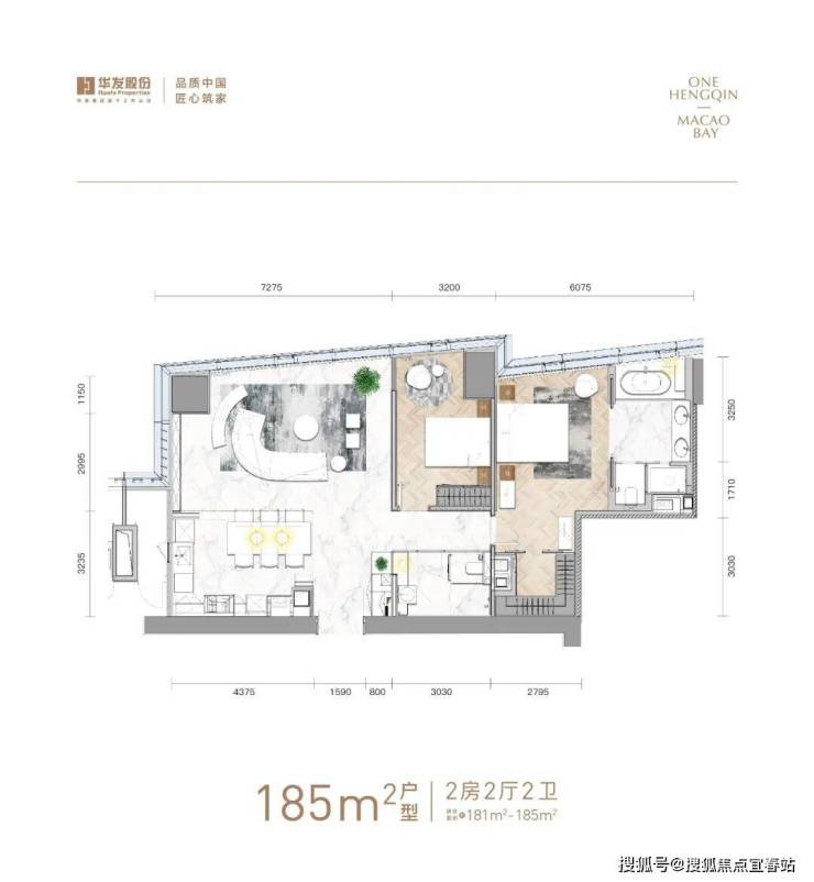 琴澳湾1号“全新一代居住形态”:集办公、住宅、商业于一体的高端综合体,包含约200米高的办公塔楼、约122米住宅塔楼以及4层商业裙楼。