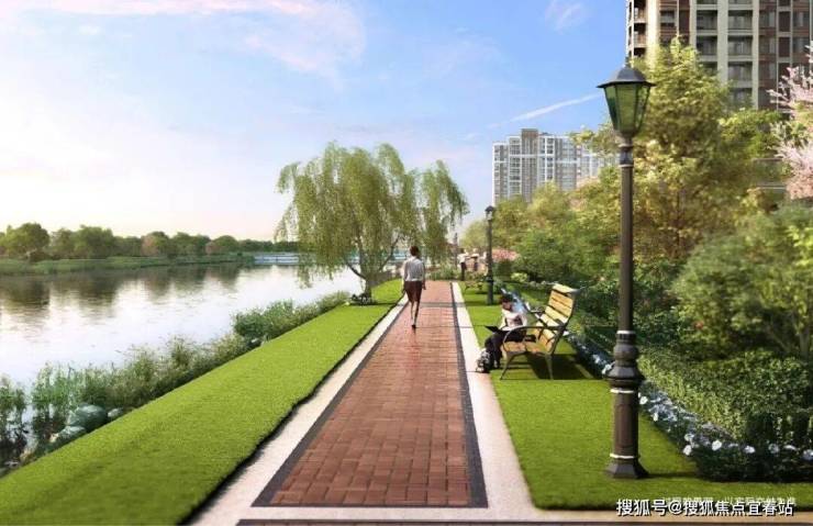 公区规划有 1.6 公里滨水跑道及室内运动公园,并结合 16 米高差打造立体花园社区,让业主享受高品质的居住环境。
