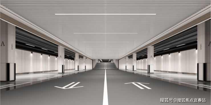 简洁大气的格栅吊顶、细致考究的灯光阵列、明亮高级的色彩搭配,可以说质感满满,这样的高配车库,更是开发商产品底线的体现。