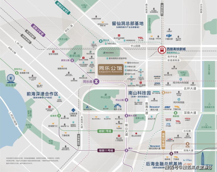 『3枢纽』:西丽高铁新城(直线距离约2.3km,在建中)、机场、深圳湾口岸便捷通达