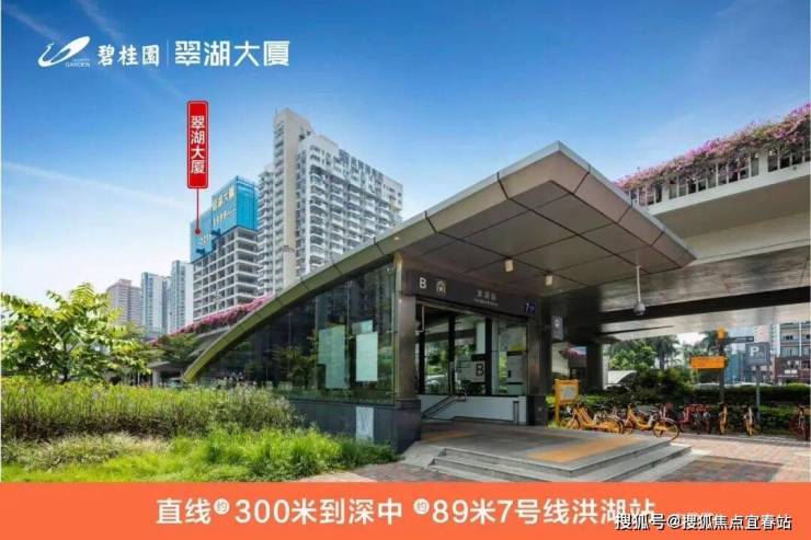 深圳罗湖碧桂园翠湖大厦:洪湖地铁口约89米,30-93㎡精装现房总价168万起