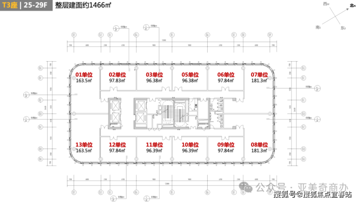 标准层面积:约1409-1466㎡