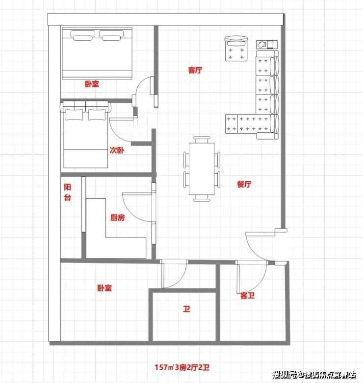 157平方米 三房二厅二卫
