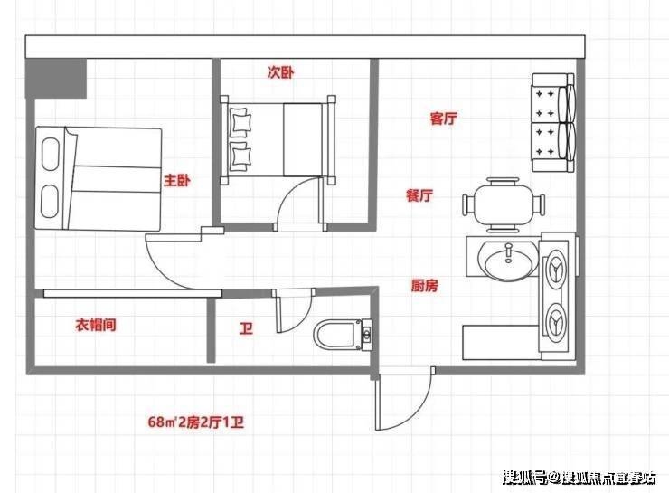 68平方米 二房二厅一卫