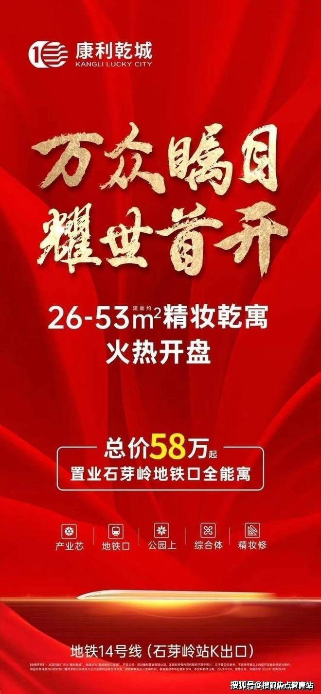 龙岗『康利乾城』58万起,26-58㎡1-3房,58-160万,单价2.2-2.7万;精装14号线石芽岭3站到福田岗厦北,