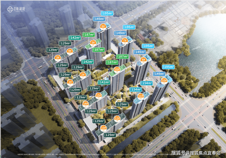 该盘东侧紧挨东湖公园,将主打约129-195㎡临湖纯板楼大平层,以超100%得房率和两梯两户的配置。