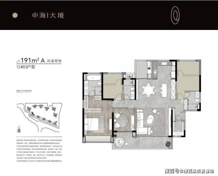 而12栋03约190㎡户型,南北对流,视觉通廊最长,通风采光最好,适合三代同堂的家庭置入。