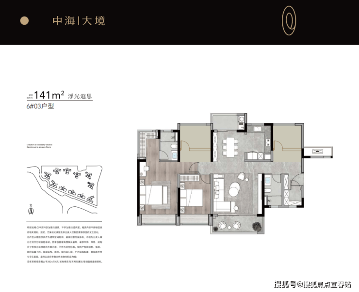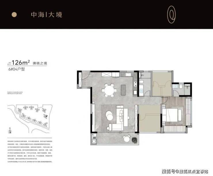 先来看约6栋04约126㎡户型,作为中海大境最小面积段的产品,拥有三开间朝南+南北双面采光+LDKB一体化等设计,充分满足家庭成员日常生活需求。