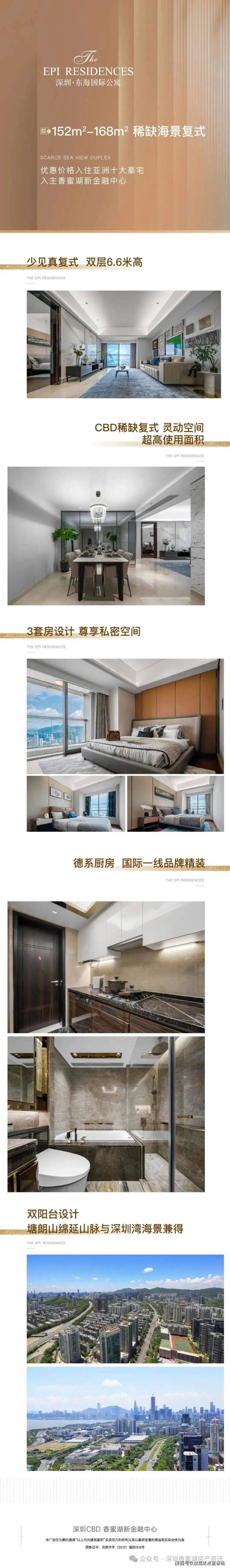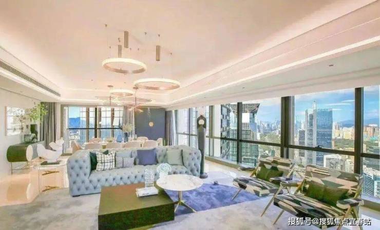 3、11米超长横厅设计,南向观景面达11.7米,永无遮挡俯瞰深圳湾海景;东向深南大道,俯望城市脉动;北向俯瞰塘朗山、香蜜公园、香蜜湖;