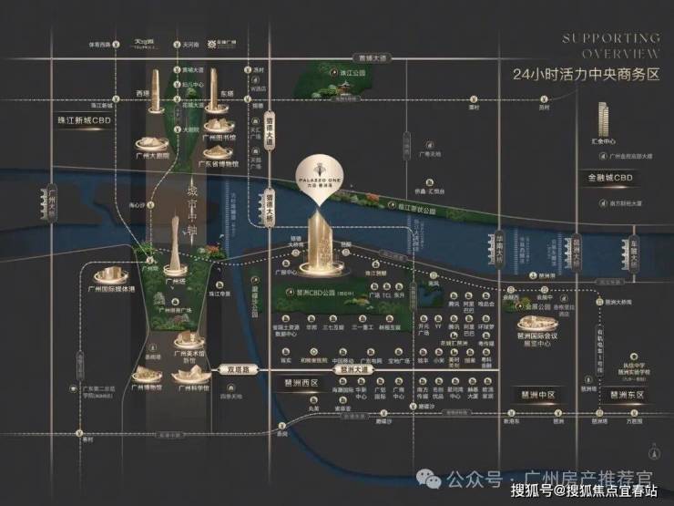 项目西面与广州塔并肩而立,距离世界级地标商圈广州塔广场仅约1.5公里,享受同步国际的顶奢资源。北望珠江新城CBD璀璨繁华,与亿级江景豪宅侨鑫汇悦台、广粤天地共享同一江境。楼下则是正在建设中的琶洲π艺术馆,将打造成琶洲一流商务文体核心地,营造艺术与生活密不可分的美学体验。
