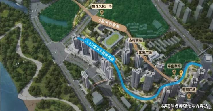 休闲方面,项目巧妙地借助休闲步道和立体连廊等设计,将狮山公园、蟹山公园、瓦壶岗公园串联起来,形成一个“三山一水”的自然景观格局。另外还将打造1.2公里滨水水景园林,打造樱花水岸及夜光跑道,与外部的公园、山景与江景相得益彰,共同构成了一个立体生态的居住环境。