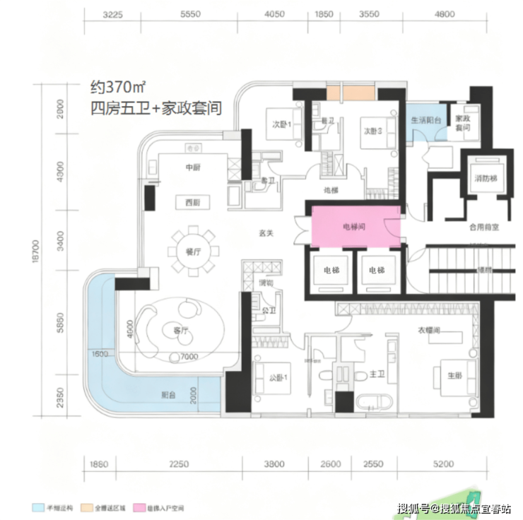 一层两户,奢适大平层:约370㎡的阔绰尺度,保障居住舒适度与私密感。