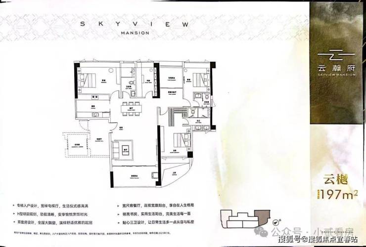 197㎡南向5房2厅3卫:四面采光,东单边户,三套房双阳台舒适大平层