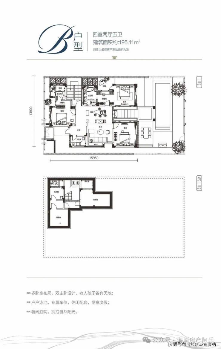B户型:四室两厅五卫 / 建面约195 ㎡