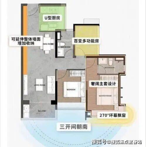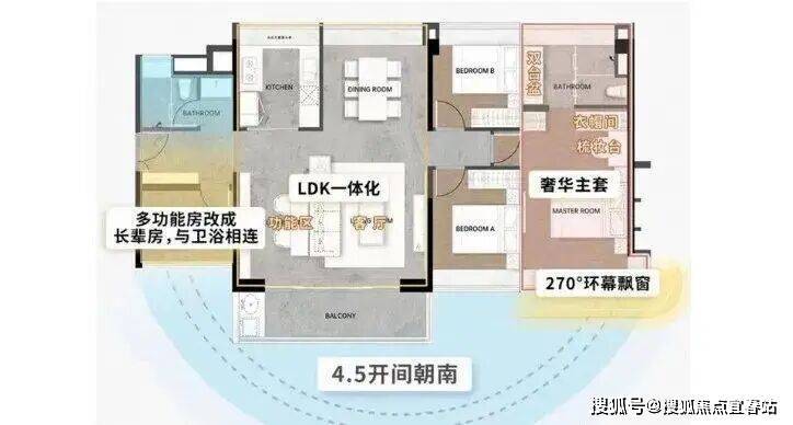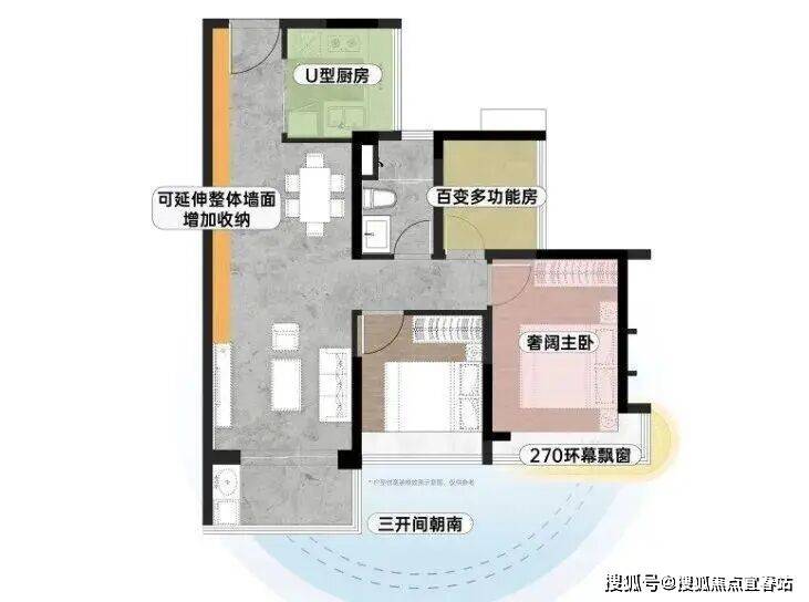 整体价值:6m³整墙收纳+南向9m采光面+5㎡全景厨房+270°景观主卧