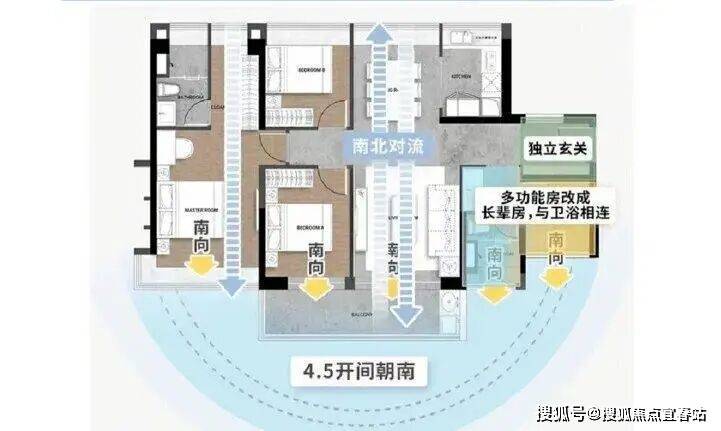 整体价值:约46㎡客餐厨空间+约26㎡南北对流主卧套房+4开间朝南+约14.5米南向采光面