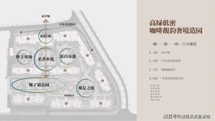 六大场景:礼仪门庭、柔香水苑、蓝山泳池、摩卡聚场、椰子猫乐园、瑰夏之庭