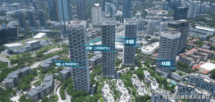 塔楼部分:3栋超高层,主力为3T1户大平层(专属电梯厅),面积段205-425㎡,分布在1.2.3栋。(1/2栋:5梯2户,397-425㎡大平层,客厅L型阳台(面宽超10米);3栋:3梯3户,205-368㎡,其中205㎡户型朝北,有暗卫)
