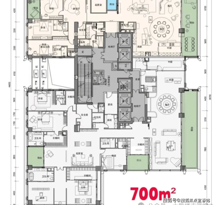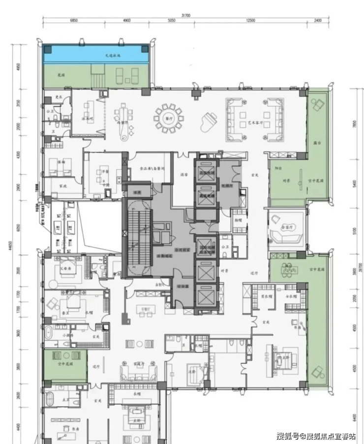 最后就是顶楼的1050㎡,堪称“空中别墅”。