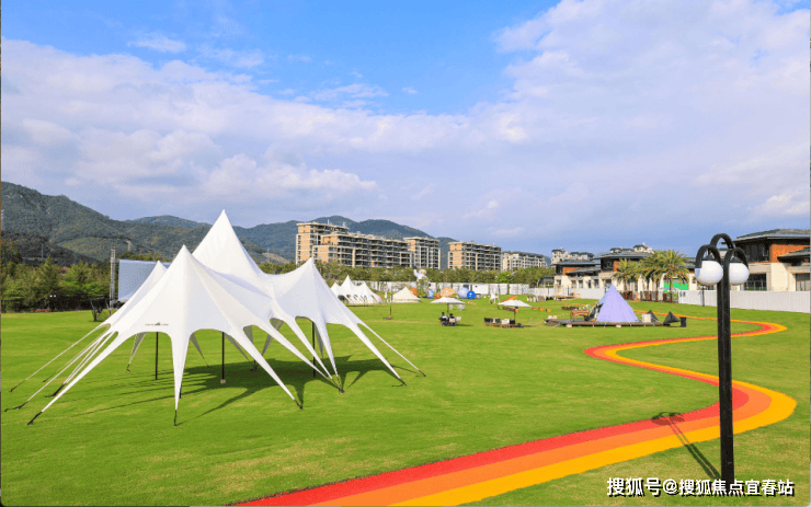 20000㎡草坪营地已于,融入ENCOFFEE咖啡吧、BBQ、野奢帐篷、飞盘体验、520m彩虹慢步道等丰富设施,打造三亚全新城市微度假目的地。