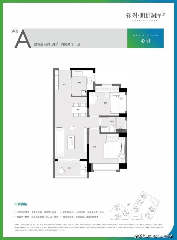 70㎡的2房2厅1卫,折后总价182-194万/套,单价2.59-2.76万/㎡。