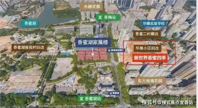 新世界香蜜四季家园位于福田区景田片区,香梅路与新闻路交汇处东北角;项目占地约4.11万㎡,建筑面积约46.68万㎡,容积率7.63。