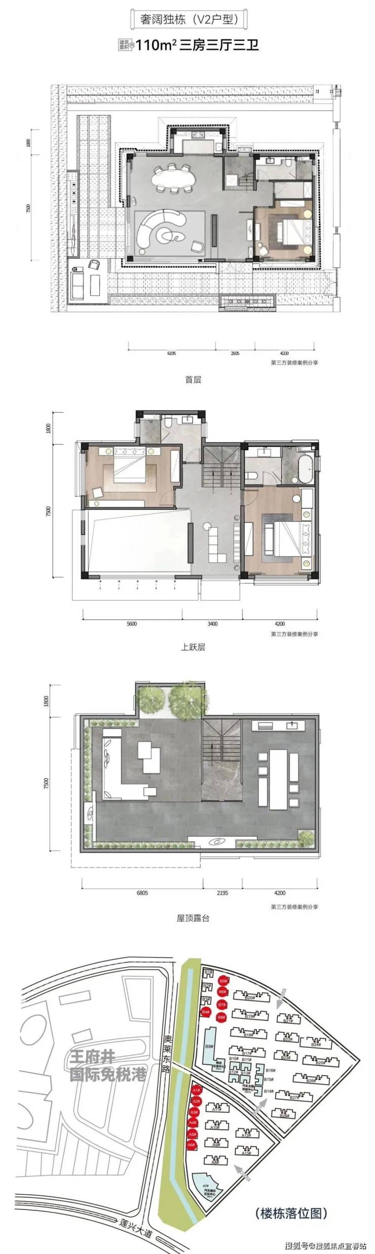 赠送情况:屋顶露台约100㎡,花园约150-230㎡