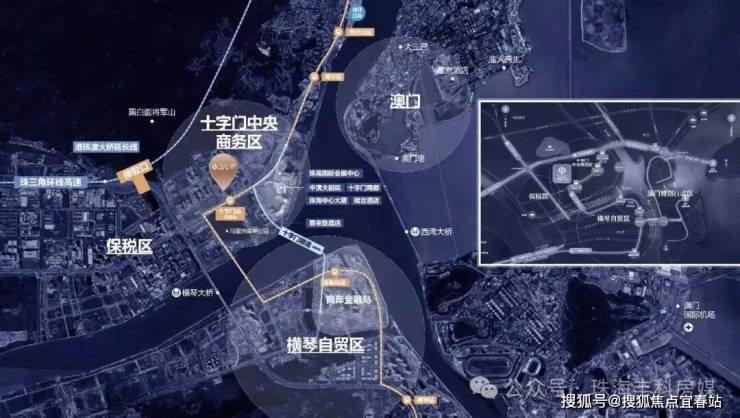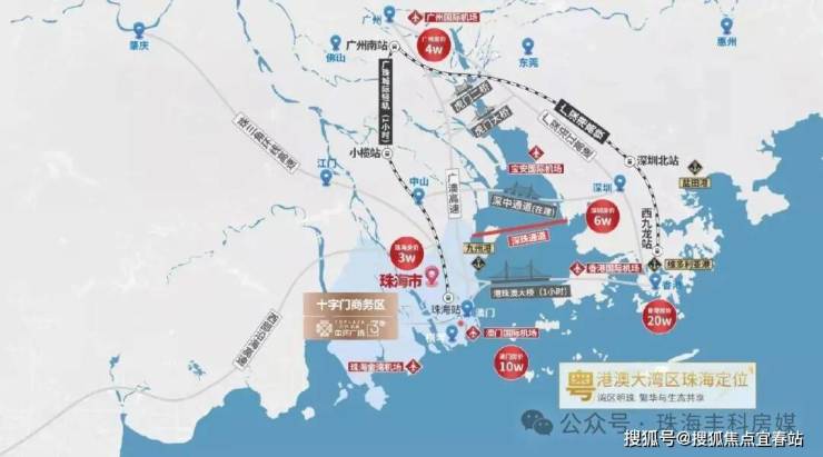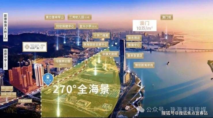 十字门海底隧道3分钟到金融岛、妈阁隧道规划中,距港珠澳大桥延长线仅2公里,45分钟到香港,珠三角环线 ,20分钟通达中山,江门等周边城市
