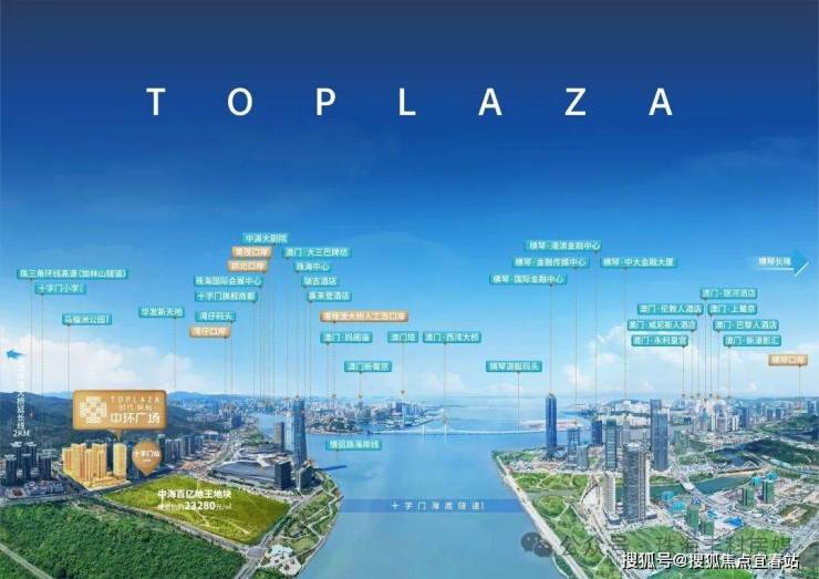 十字门中央商务区、世界旅游休闲中心澳门 、国内首个横琴离岸金融岛,三大核心鼎立结合,45家世界500强,73家中国500强,超1700亿投资,7000家金融类企业,6500家科技类企业,2000亿年产值预期,珠海新中心 —— 打造超级总部基地