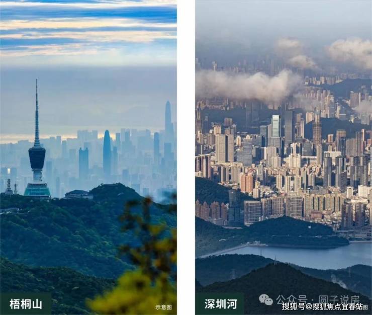 【三面环山 户户观景 城央稀缺生态】选址梧桐山下,比邻深圳河,隔空对望香港红花岭,三面环山得天独厚山景资源,南北双向无遮挡视野,户户观山景。