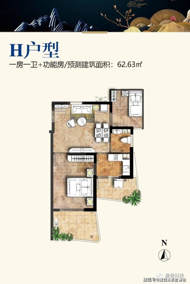 H户型 一房一厅一卫 建筑面积为62.63㎡