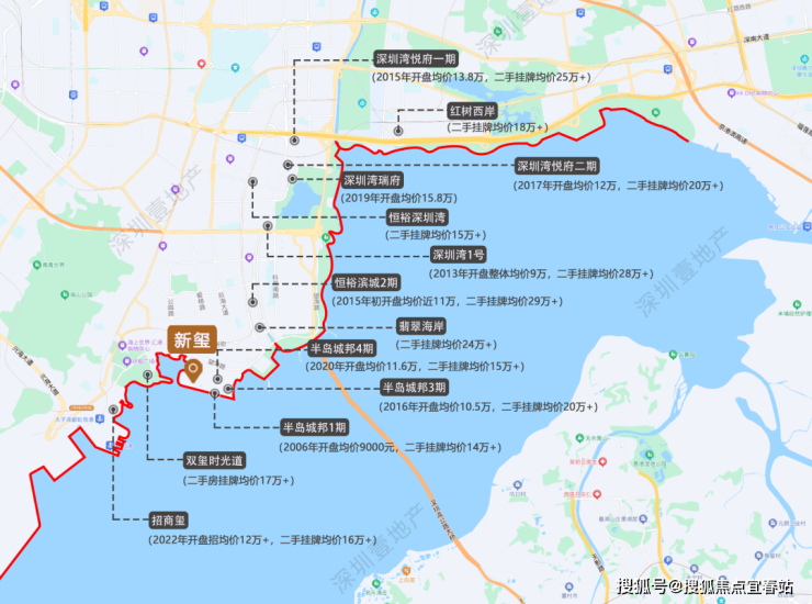 ▲深圳湾豪宅线示意图,挂牌均价为7月,来自贝壳找房