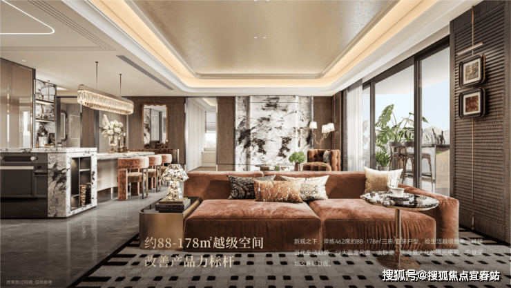 低密改善的创新作品。5栋16-25层建筑,勾勒出低密宜居的人文美学之地。超尺度门庭,引领归家的气度。宽度近51米恢弘门头、酒店式大堂,融入20根7米香槟金立柱,敬呈宝格丽演店般的客华感与仪式感。