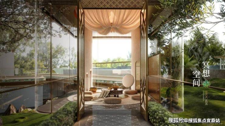 奢阔尺度的冥想空间、能量运动舱,配置巨幅落地玻璃,不仅引光入室,更将繁花绿意与下沉庭院的水景尽收眼底,实现建筑、自然与艺术的无声交融。