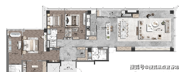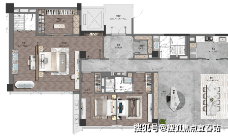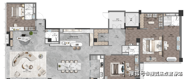 346㎡(4室2厅4卫):南朝向,双主卧套房设计,配备独立衣帽间和卫生间,私密性极佳。