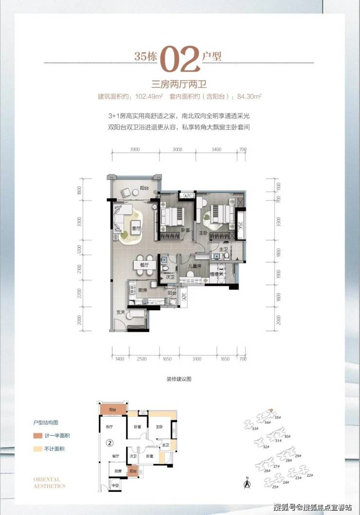 逸骏半岛三期35栋新品,建面约91-110㎡,以更小的建筑面积,巧思匠造,实现空间阔绰灵动变化、户户南向采光充沛的大三房、3+1房。