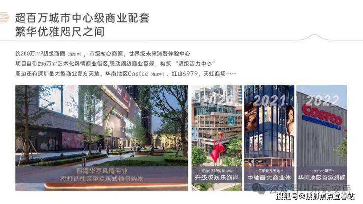 周边深圳最大型商业壹方天地、华南地区Costco(在建中)、红山6979、天虹商场等