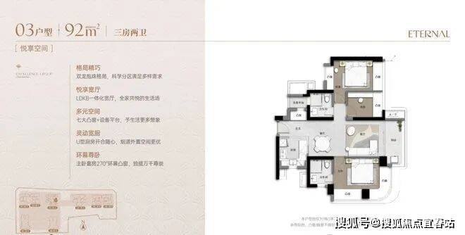 建面约92-173㎡三至四房缦系新规产品, 六大设计亮点,定义人居新境。