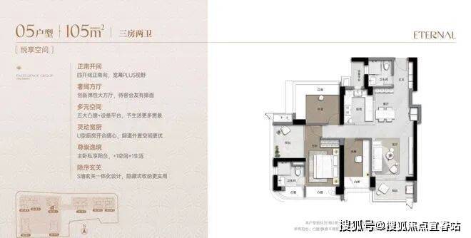 项目5个户型样板间已全部开放,以超高使用率和创新设计赢得市场关注:
