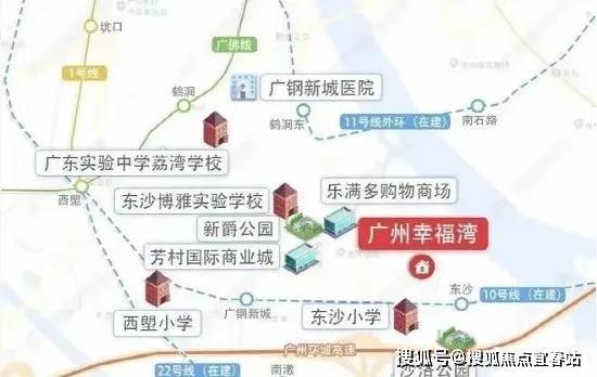 项目目前现有地铁是1号线西塱站距离项目大约3.5公里,周边还有10、11、22号线(在建中)三地铁交汇,其中距离10号线东沙站仅约600米(预计2024年底开通),串联天河白云越秀荔湾和海珠区,连接广州火车站、广州东站等大型交通枢纽,便捷出行;