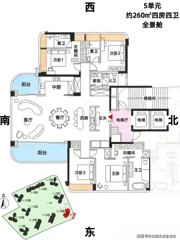 空间宽敞舒适:主力户型面积在143-500㎡之间,均为大平层设计,空间开阔,适合多代同堂或追求宽敞居住环境的家庭。部分户型还设有独立电梯厅,专梯入户,私密性和尊贵感强。