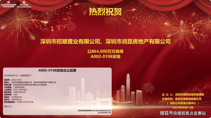 2025年8月,招商与华润以86.4亿元竞得此地,楼面价约5.96万/㎡。