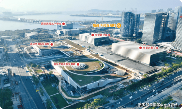 项目位于宝中核心,欢乐港湾西北角,正南向直面前海湾。这里汇聚了宝安顶级市政资源:宝安图书馆、青少年宫、湾区之声演艺中心环伺。商业上,除自身配建外,步行可达壹方城、前海山姆,欢乐港湾即在眼前,生活便利度拉满。