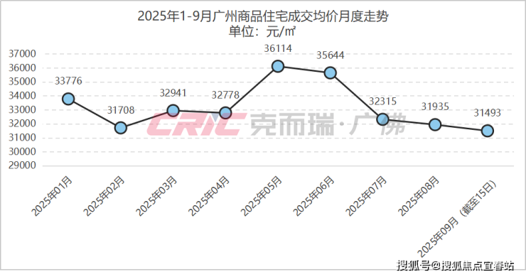 在成交均价上,克而瑞数据监测显示,9月前半月(截至15日)广州商品住宅成交均价31493元/㎡,较8月前半月(截至15日)基本持平。