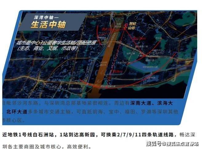 立体多维交通体系:毗邻沙河东路、950米的深南大道,临近地铁1号线白石洲站、规划地铁29号线。