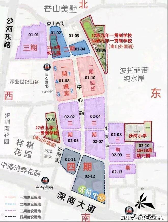 白石洲1公里范围内,聚集了5所初中,7所小学。项目所处片区已纳入南山外国语集团教学,现在周边有沙河小学,南山第二实验学校,且项目自身带4所幼儿园共57班,3所九年一贯制学校共90班,学校都会在一期建成时共同交付。