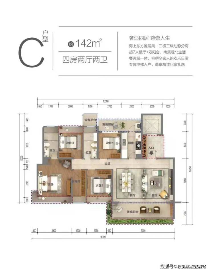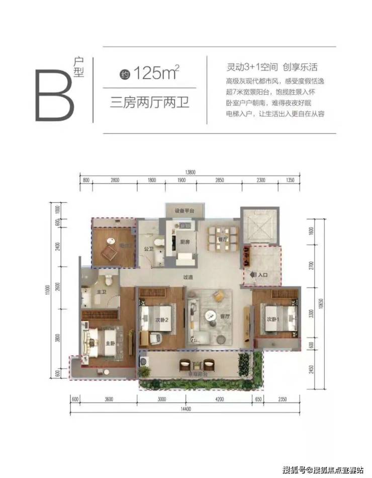 主力户型:建面约108m² 三房两厅两卫125m² 3+1房两厅两卫142㎡ 四房两厅两卫
