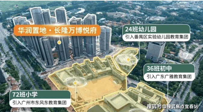 项目自带一所21班公立广东省番禺实验幼儿园,和72班公立东风东小学,还有36班公办广雅初中预计2025年9月开学,基本上都确定省一级学校