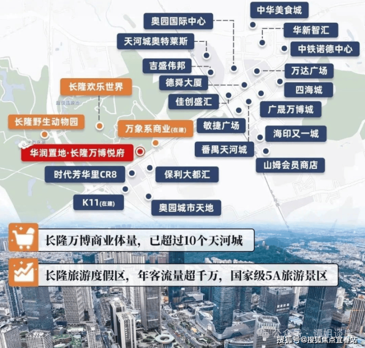 项目背倚全球第六大主题乐园集团、国家5A级景区约150万m²长隆旅游综合商圈。