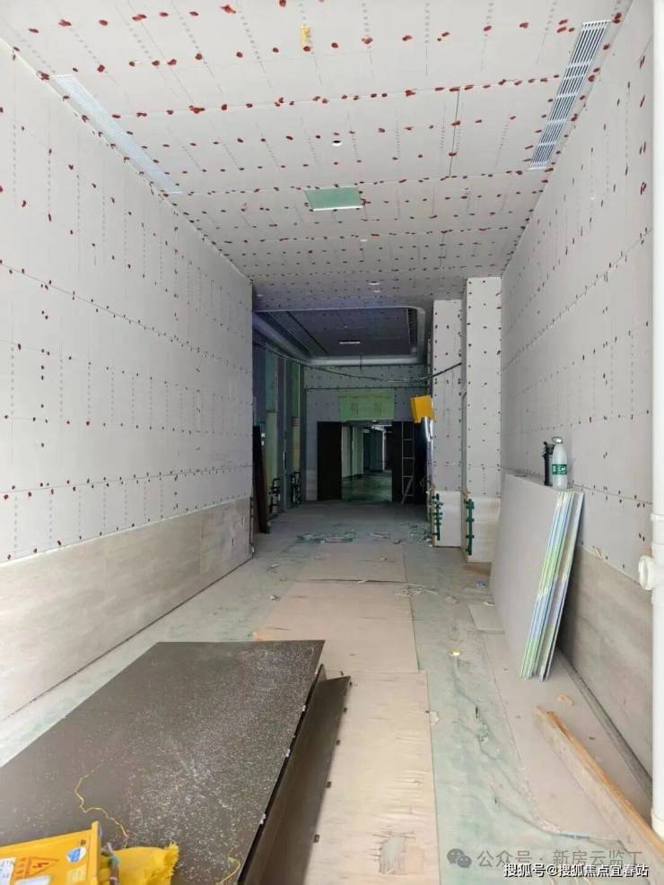 这是回迁房(西侧两栋楼)的入户大堂,目前已经铺好了地砖,墙面做好了装饰底板,进度还是相对快的。